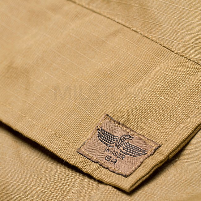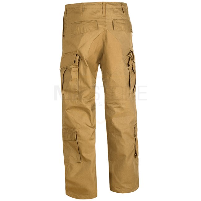 Pantalon TDU Revenger Invader Gear haute performance, couleur coyote et taille L. Pèse 650g. Inclut un lien vers un tableau des tailles pour référence.