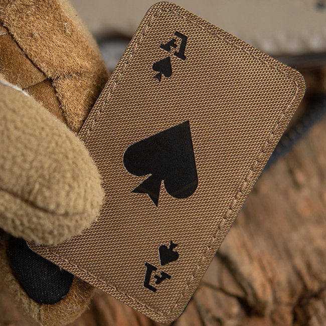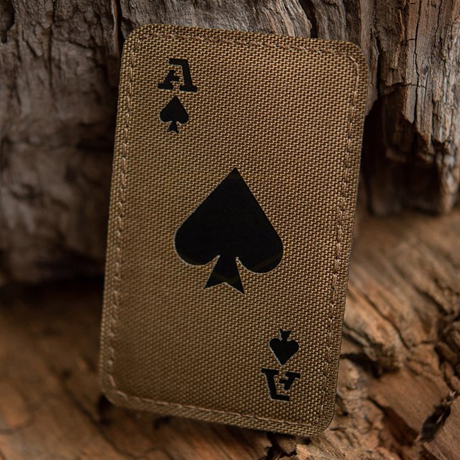 M-Tac As de Pique Découpe Laser Patch - Coyote. Avant en nylon Cordura 500D durable et dos avec surface auto-agrippante. Dimensions compactes 80 x 50 mm.