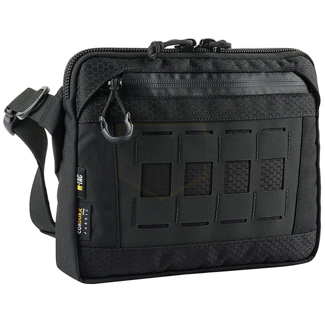 Sac Admin M-Tac Elite - Noir : Design élégant, fonctionnalité. Matériaux Cordura 500D et Cordura Hex, fermetures éclair YKK, boucles Woojin. 2 poches, bandoulière ajustable avec Fastex, paroi intérieure en velours, poche avant imperméable, système MOLLE,