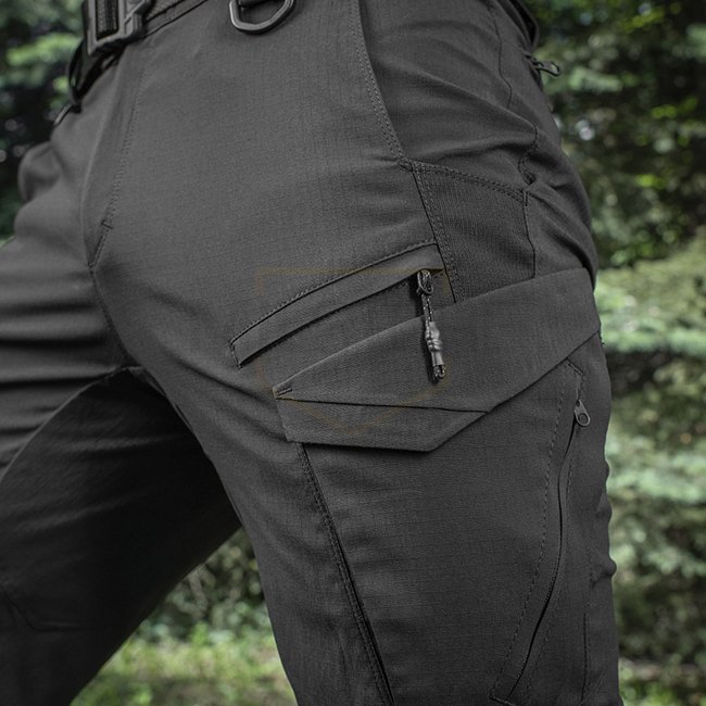 Des poches pratiques et larges avec des inserts renforcés contiendront le minimum d'articles nécessaires. Des accessoires YKK de haute qualité ont été utilisés. Le pantalon a également une sangle élastique "tunnel" avec un ajustement pratique et est conçu pour être porté avec une ceinture jusqu'à 5.5cm de large. Sur le devant, il y a deux anneaux en D pour accrocher divers équipements. Le bas du pantalon est réglable en largeur grâce à un cordon élastique et velcro.
