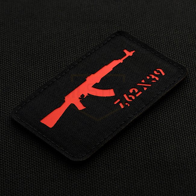 M-Tac AKM 7.62x39 Écusson Découpé au Laser - Rouge. Avant en Nylon Cordura 500D et dos à surface auto-agrippante. Dimensions 80x50mm.