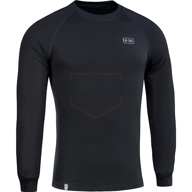 Le M-Tac Athlete Raglan polyvalent en noir, taille XS, avec manches raglan pour un mouvement sans restriction et des poignets extensibles pour le confort.