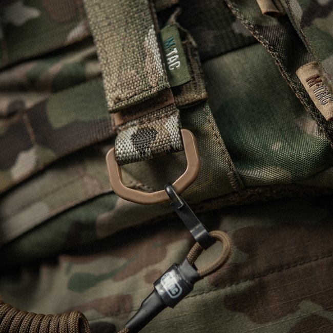 L'attache M-Tac D-Ring est conçue pour attacher des objets supplémentaires à un sac à dos, un porte-plaque, un gilet pare-balles, une ceinture ou tout autre équipement doté d'une interface MOLLE.