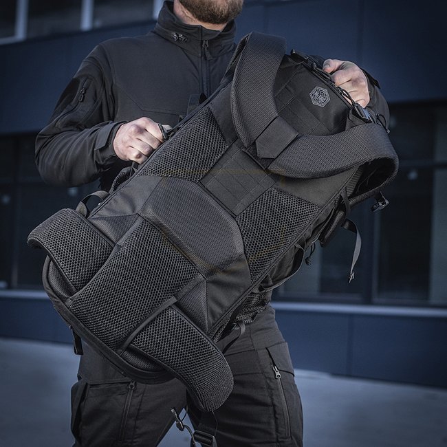 Le sac à dos M-Tac Grand Elite Hex - Noir est un sac à dos ergonomique et élégant en matériau Cordura. Il dispose d'un système MOLLE découpé au laser pour l'ajout de pochettes supplémentaires, de bretelles rembourrées pour le confort, et de liens latéraux