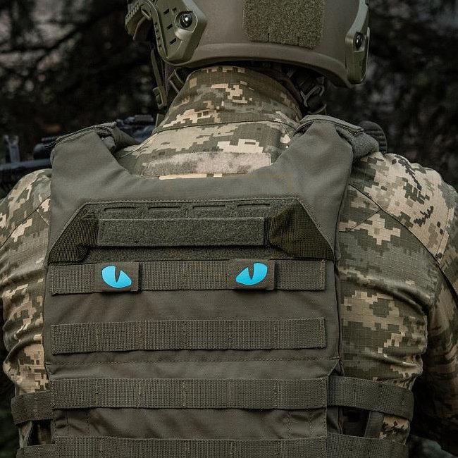 M-Tac Blue Tiger Eyes Patch Découpé au Laser en Vert Ranger. Fabriqué en matériau de devant Cordura 500D, avec des propriétés de stockage de lumière. Dos avec surface à crochet. Dimensions sont 40 x 25 mm.