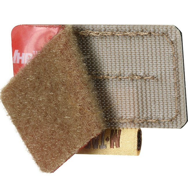 La conception du produit est une plate-forme en carbone avec une sangle élastique qui fixe de manière fiable deux coques de calibre .308 (7,62x51 mm). Le panneau Velcro est fixé à la crosse ou au boîtier à l'aide d'une base adhésive polymère 3M. Ce porte-obus est fixé à l'arme à l'aide d'un panneau Velcro, qui peut être retiré si nécessaire sans déconnecter la base Velcro du fusil.