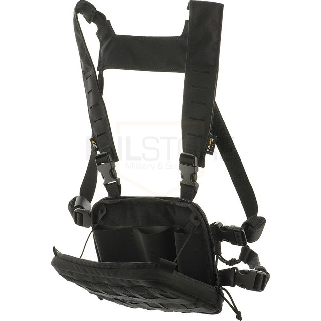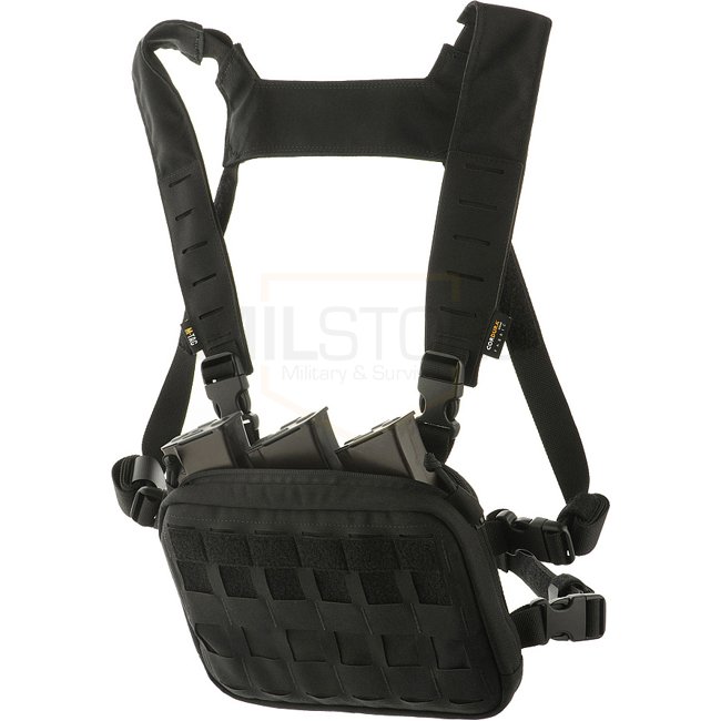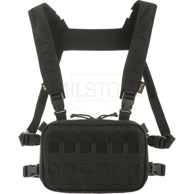 Le Chest Rig Militaire Elite de M-Tac en Noir est le mélange ultime de confort et de fonctionnalité, comprenant un panneau avant MOLLE Laser Cut, un système de largage rapide fastex, et un profil mince avec un système de harnais en H pour une commodité ma