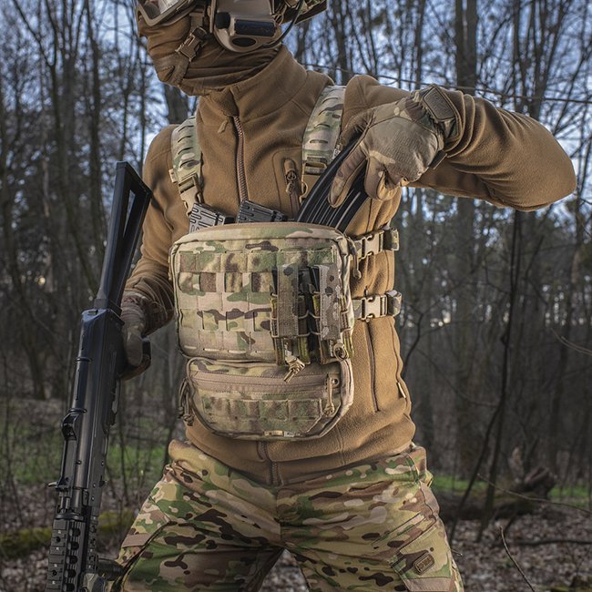Le Chest Rig Military Elite allie confort et polyvalence. À l'intérieur de la pochette, il y a un organisateur qui vous permet de placer les éléments nécessaires. Il est équipé d'un panneau avant MOLLE Laser Cut et d'un système de vidage rapide fastex. Le profil mince de la pochette et le système de harnais de type H vous permettent de libérer vos mains. De plus, à l'aide d'inserts modulaires fixés avec du velcro, vous pouvez étendre considérablement la fonctionnalité à vos besoins personnels.