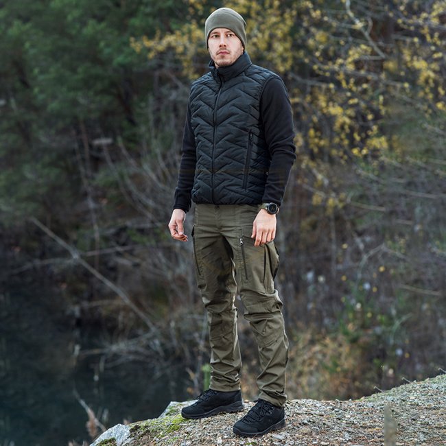 Le Conquistador Flex Pants Gen.I deviendra votre compagnon fiable dans tout type d'activité de plein air. Vous pouvez les porter à l'entraînement, au stand de tir, au camping, en voyage, à pied ou même au travail. Fabriqué en PolyCotton Ripstop Flex, le pantalon est conçu pour être très résistant au stress et à l'usure. Le tissu est moins dense que les jeans et les matériaux similaires, ce qui permet à l'air de circuler plus librement et améliore le transfert de chaleur. Mais en même temps, il est plus durable et sèche plus rapidement grâce à l'imprégnation en téflon résistant à l'eau et aux taches. Les fibres de spandex rendent le tissu extensible et assurent un ajustement confortable.