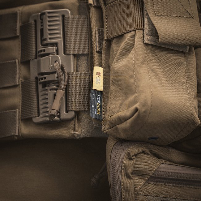 La partie principale est fabriquée en matériau Cordura 500D de haute qualité - un tissu super résistant, résistant à l'abrasion et à la déchirure. La couverture et l'interface MOLLE sont fabriquées à l'aide de la technologie Laser Cut.