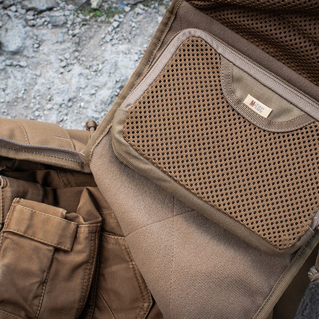 Ce panneau utilitaire M-Tac Hook & Loop - Coyote est l'accessoire parfait pour votre sac ou sac à dos, offrant une poche en maille zippée sécurisée pour organiser les petits objets.