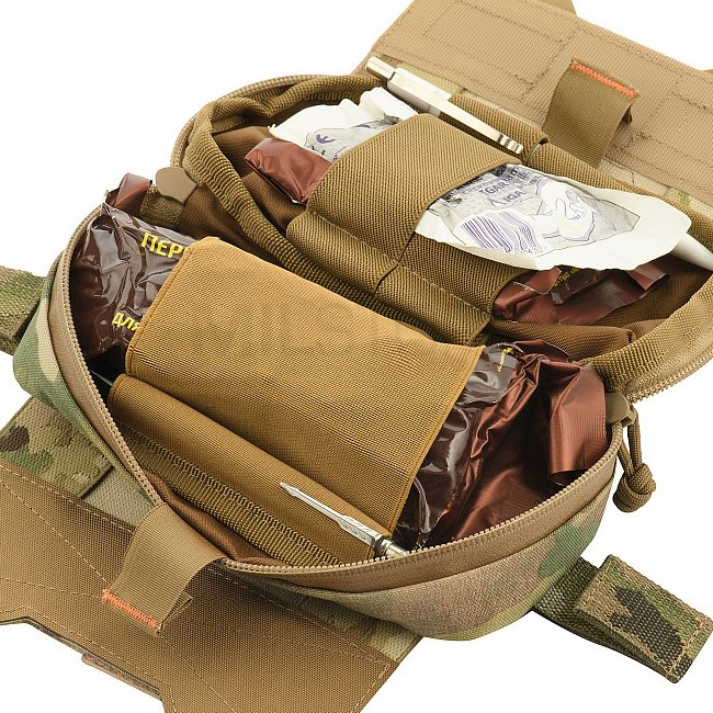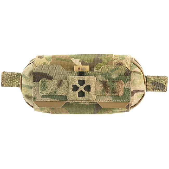 La pochette médicale horizontale M-Tac Elite en Multicam est une trousse de premiers secours polyvalente, fabriquée en matériau Cordura 500D et dotée d'une fermeture éclair imperméable. Elle se fixe facilement à toute surface MOLLE et peut être passée dir