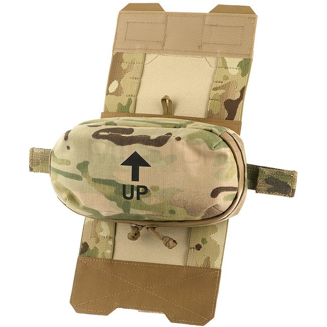 L'organisateur est fabriqué en Cordura 500D avec un support en polyuréthane utilisant une fermeture éclair étanche YKK AquaGuard pour garder le contenu au sec. il peut être rapidement retiré de la base de chaque côté. Il y a un signe de transfert thermique sur le devant de la trousse de premiers soins pour indiquer sa position optimale.