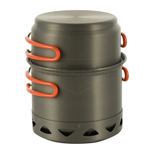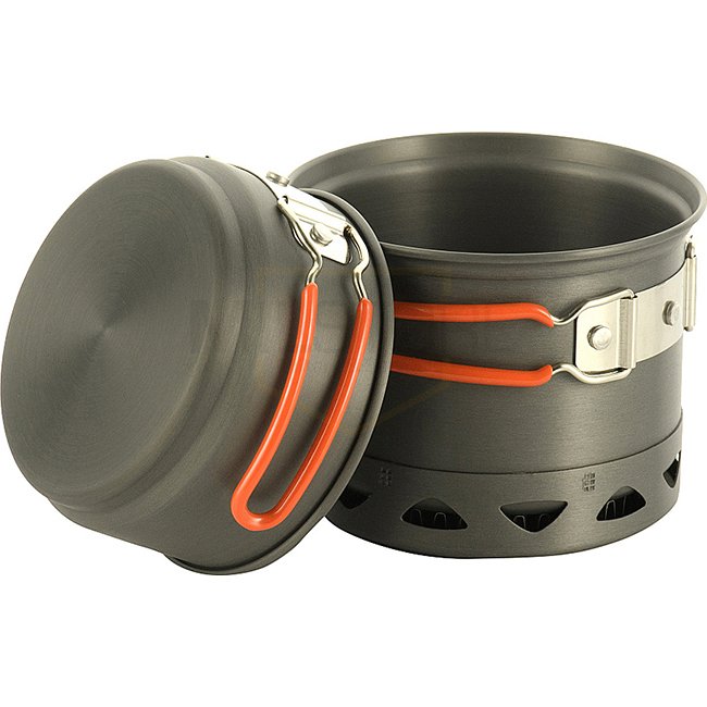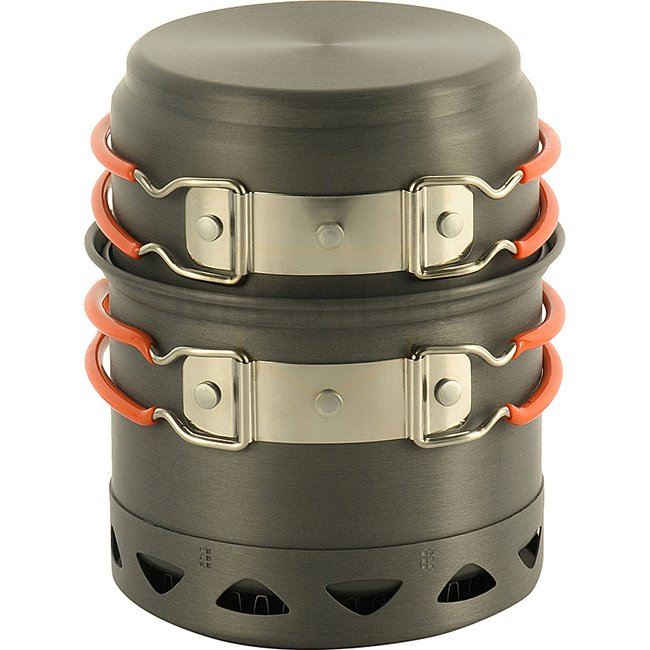 Cet ensemble individuel d'ustensiles de cuisine est facile à utiliser pendant les loisirs en plein air. Il est conçu pour être utilisé avec des brûleurs et peut vous aider à chauffer rapidement de l'eau ou à cuire des aliments. Il est fabriqué en aluminium anodisé durable et résistant à la déformation. Les ustensiles de cuisine n'alourdiront pas votre équipement et les parois minces garantiront qu'ils chauffent rapidement. L'ensemble est livré avec des casseroles de 1,5 litre et 0,4 litre qui peuvent également être utilisées comme poêle à frire. Les poignées spéciales empêchent les brûlures.