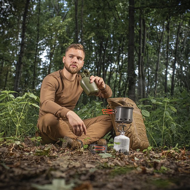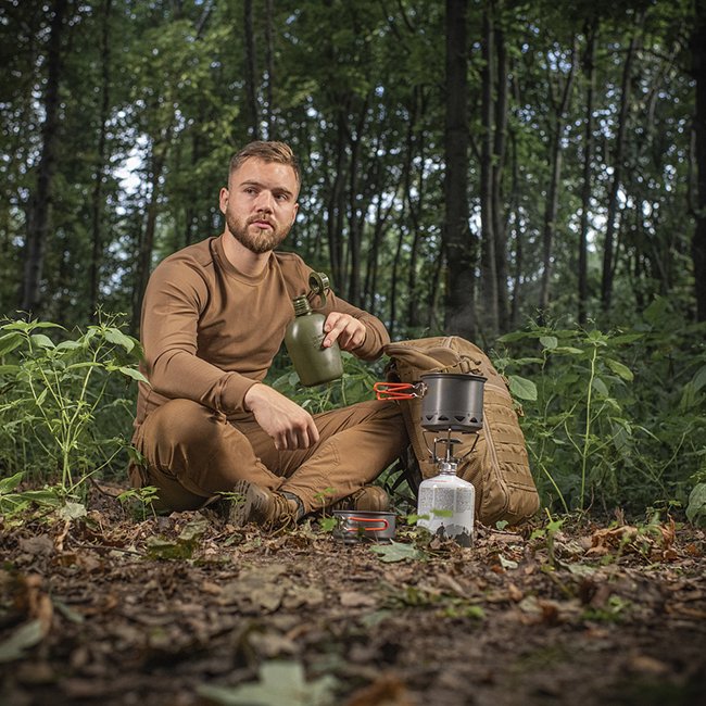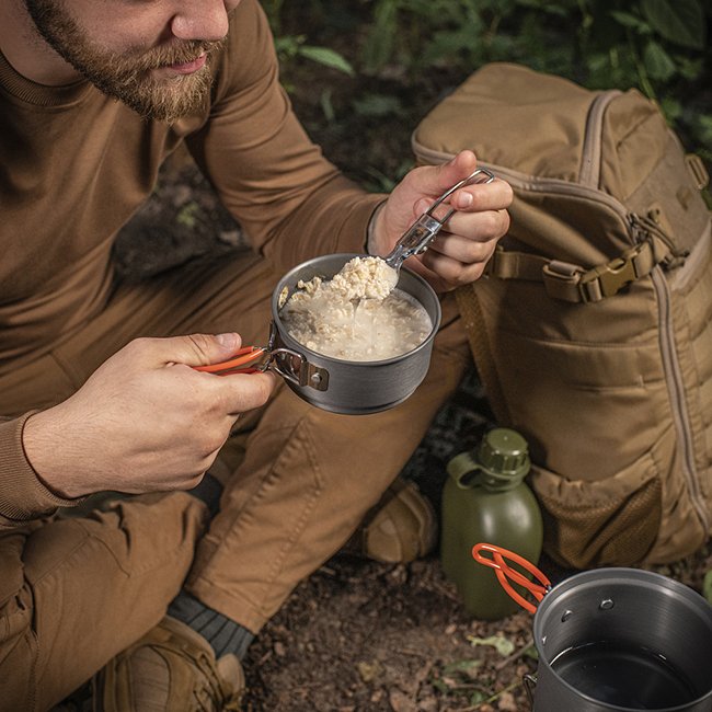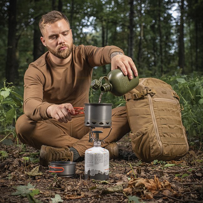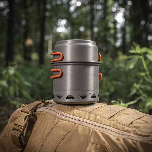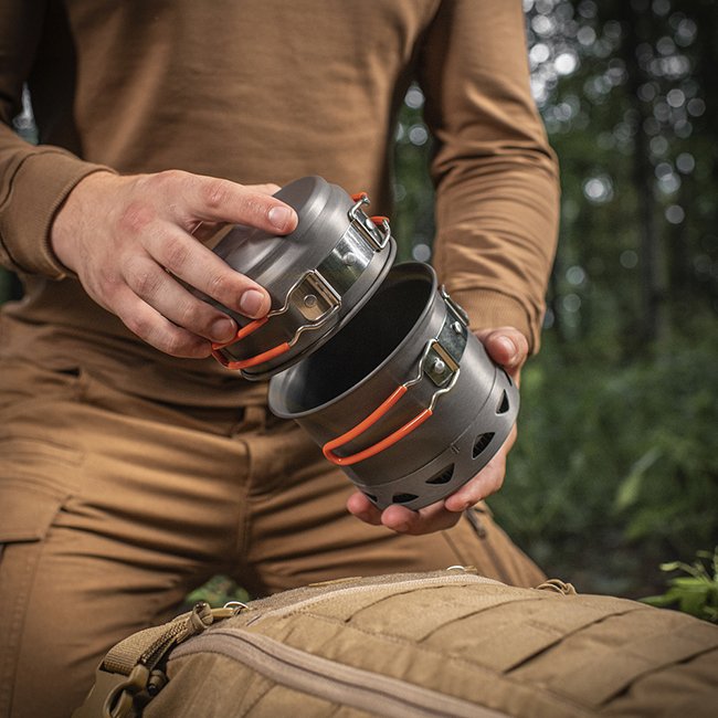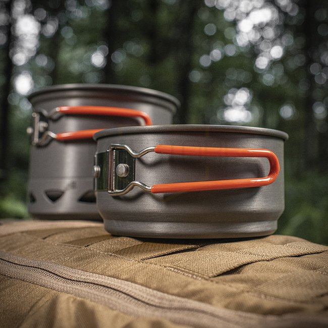 Ce set de cuisson M-Tac Individual Burner est idéal pour la cuisine en plein air. Fabriqué en aluminium anodisé durable, le set comprend une casserole de 1,5L et une de 0,4L qui peuvent également servir de poêle. Avec des poignées spéciales pour prévenir