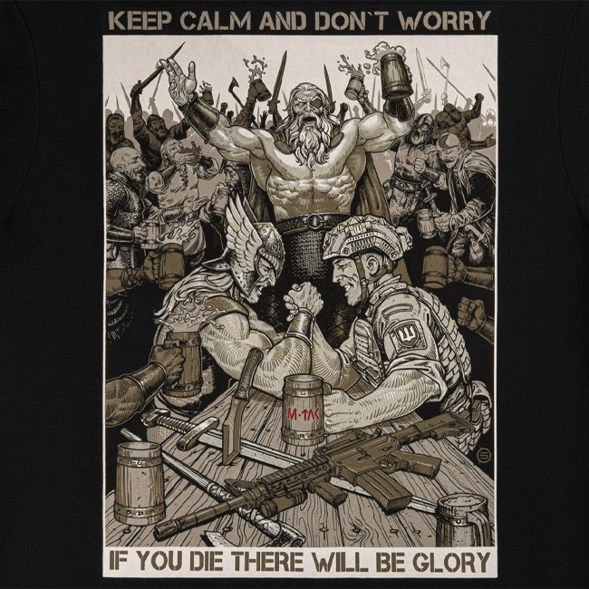 T-shirt M-Tac Keep Calm en noir, taille L. Fabriqué à 93% de coton et 7% d'élasthanne avec un poids de 190g.