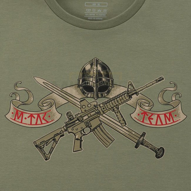 T-shirt M-Tac Keep Calm couleur Olive clair. Fabriqué en 93% coton et 7% élasthanne. Pèse 190g. Confort et style combinés.