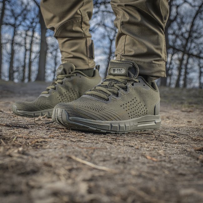 Baskets d'été légères M-Tac - Olive - Taille 44 : Baskets légères et respirantes, parfaites pour les activités estivales. Semelle en caoutchouc antidérapante pour une adhérence optimale et zone de orteil renforcée pour la protection. Convient pour des ran