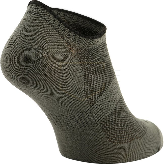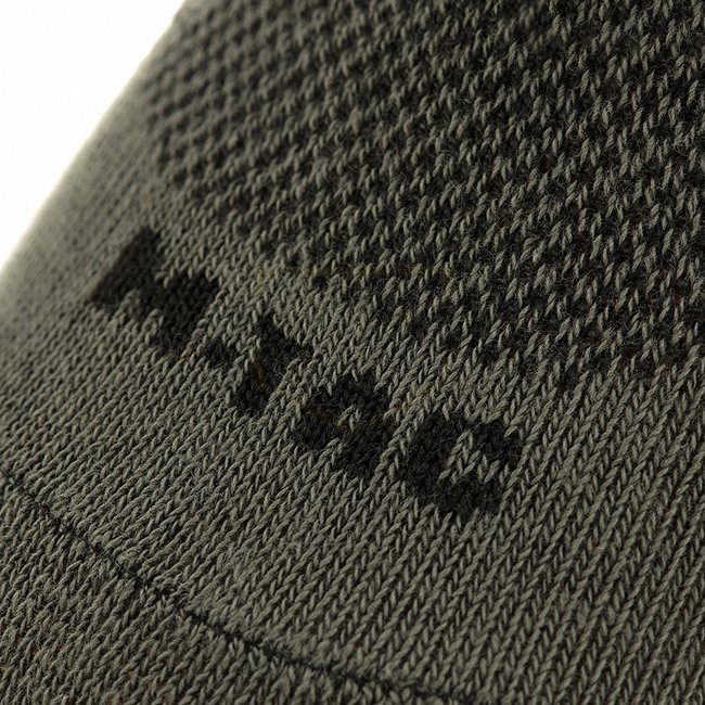 Chaussettes d'été légères M-Tac en couleur olive, taille 43-46. Parfaites pour la course et les sports de plein air par temps chaud. Tissu confortable et respirant avec des poignets élastiques pour un ajustement optimal.