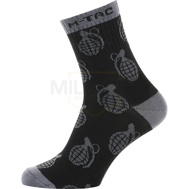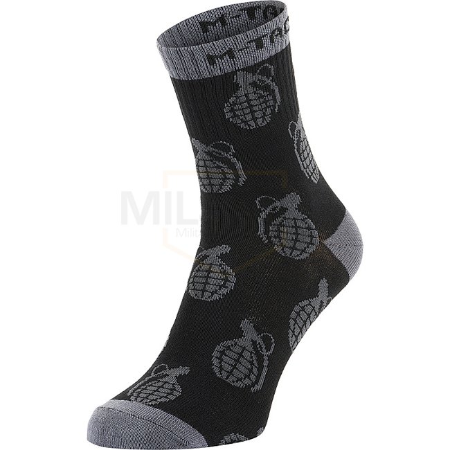 Chaussettes légères M-Tac Grenades Mk.3 - Noir - 43-46 : Chaussettes légères et respirantes avec une thermorégulation optimale. La bande élastique évite le twisting, forme anatomique pour le confort. Parfaites pour les saisons chaudes. Matériau : 80 % cot