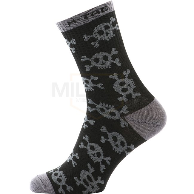 Chaussettes légères M-Tac Pirate Skull Mk.3 en noir 43-46 - Fabriquées en matériau respirant pour une thermorégulation optimale. La bande élastique empêche le torsion, motif original pour un look unique. Forme anatomique pour un port confortable et sans f