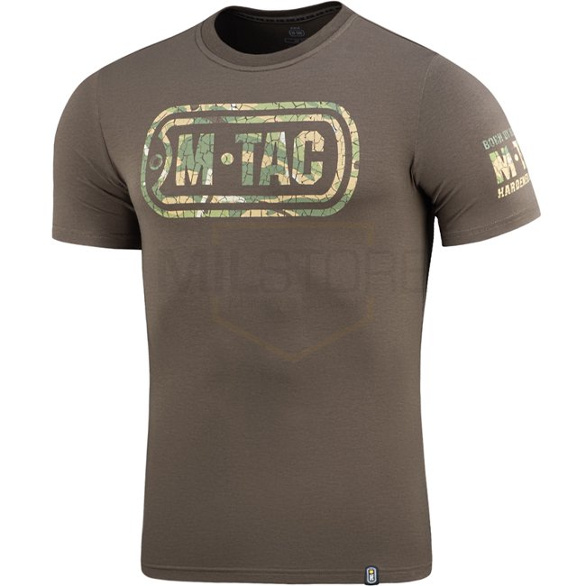 T-shirt M-Tac Logo en couleur olive foncé, taille S. Fabriqué en mélange de 93% coton et 7% élasthanne, pesant 190g.
