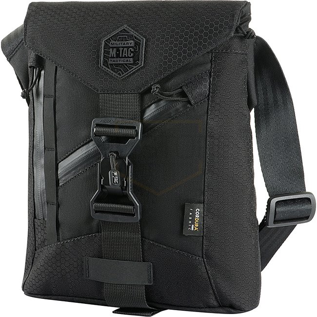 Le sac M-Tac Magnet Bag Elite Hex Gen.II en noir est un sac polyvalent et confortable qui présente un design de tablette. Il possède une bandoulière ajustable, une fermeture FidLock avec un aimant intégré, et plusieurs compartiments incluant des poches ré
