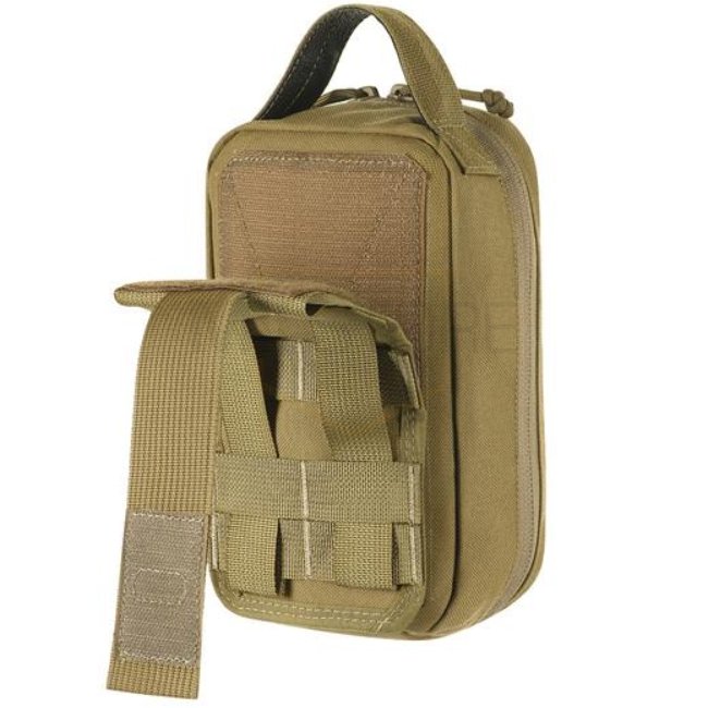 Pochette Médicale M-Tac Détachable en couleur Coyote, fabriquée en matériau Cordura 1000D durable. Pèse 200g et mesure 21x14x9 cm. Idéale pour le matériel médical en déplacement.