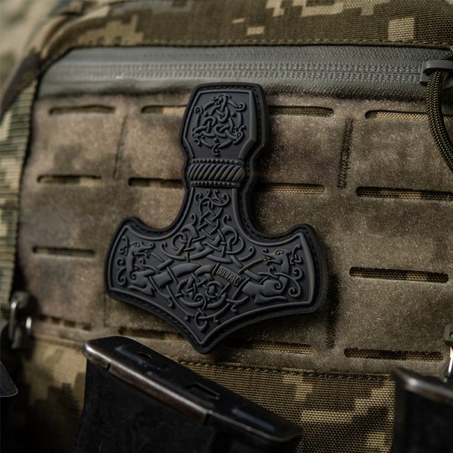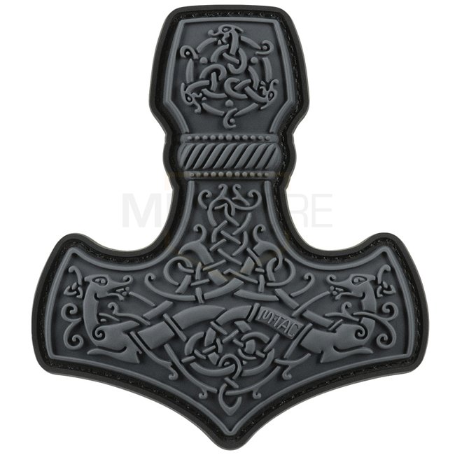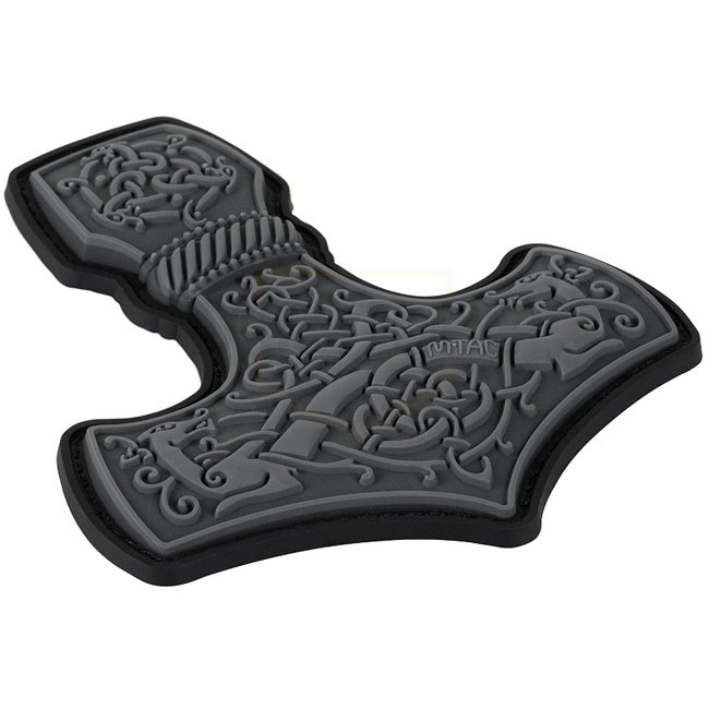 M-Tac Mjolnir Patch en caoutchouc grand modèle - Gris. Face avant en PVC avec dos à surface auto-agrippante. Dimensions : 90 x 80 mm.