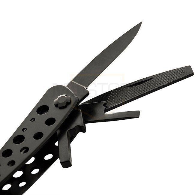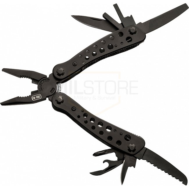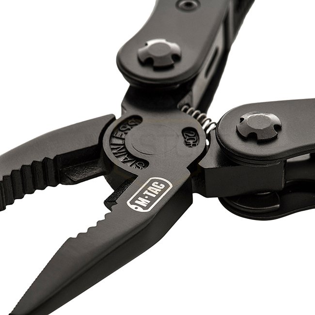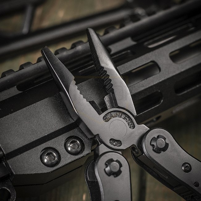 Multitool de haute qualité, fiable et relativement peu coûteux. Le kit comprend les outils les plus nécessaires et les plus souhaités pour un usage quotidien : pinces et pinces coupantes, tournevis, scies, ouvre-boîtes et ouvre-bouteilles, et même une lime, le tout dans un ensemble compact et pratique qui ne prend pratiquement pas de place lorsqu'il est fermé.