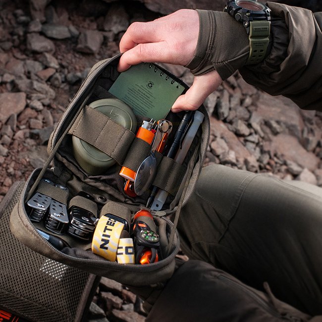 Cette pochette multi-usages permet de transporter une trousse de secours, une trousse EDC (stylo, couteau, lampe torche, carnet, multitool, etc.) ou une trousse de survie individuelle. Il peut être attaché aux sacs à dos et aux gilets à l'aide du système MOLLE et s'ouvre à 90 degrés.