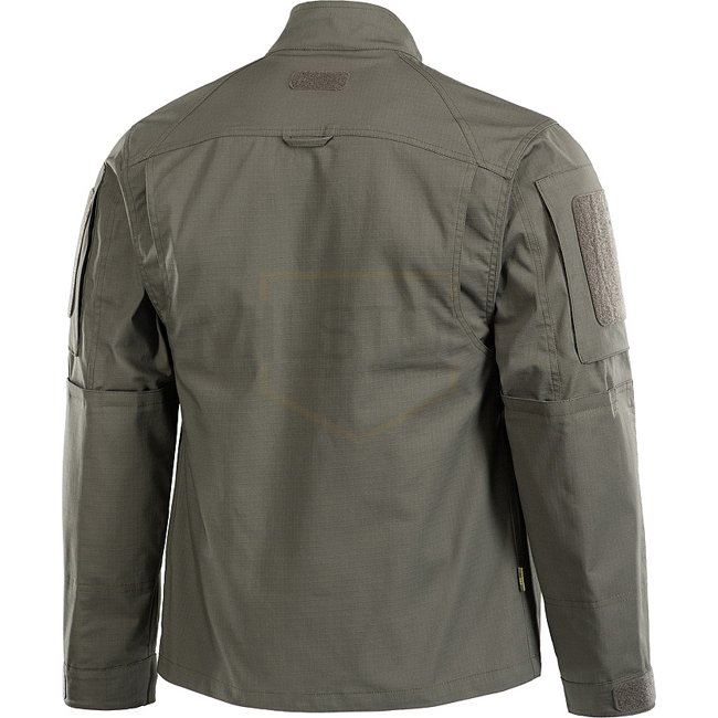 Dans la partie supérieure du dos, il y a un empiècement renforcé avec un panneau velcro pour un marqueur IR sous le col, des plis d'expansion autour des bras aident à maintenir la liberté de mouvement, même lorsqu'un gilet pare-balles est porté. Les manches sont équipées d'une poche coude pour un insert souple. Les poignets sont réglables en largeur à l'aide de fermetures velcro.