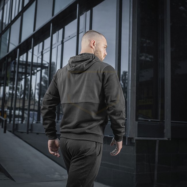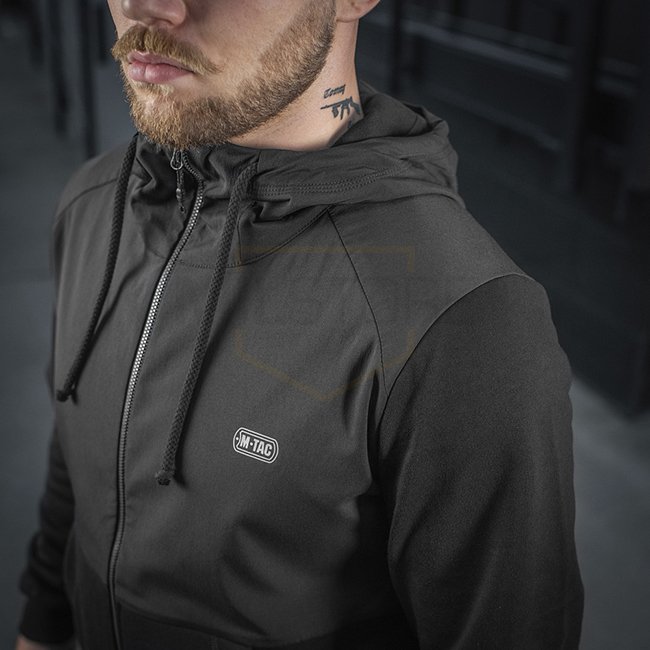 Veste M-Tac Pilgrim - Veste noire XS élégante et pratique, fabriquée à partir d'un mélange de nylon, d'élasthanne et de 100% coton. Comporte une fermeture éclair centrale, des poches spacieuses, des poignets côtelés et une capuche confortable. Idéale pour