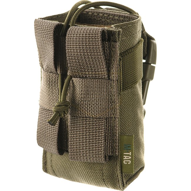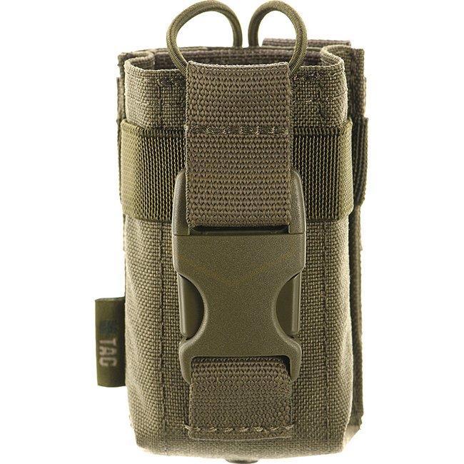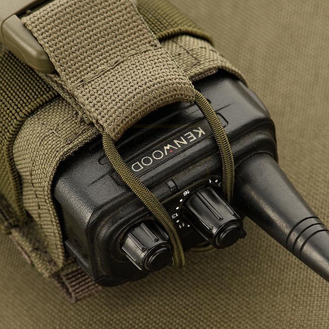 Le porte-radio M-Tac en couleur vert Ranger est conçu pour un accès facile aux commandes de la radio. Compatible avec divers modèles de radios professionnelles et fabriqué en matériau Cordura 1000D durable. Dimensions : 10.5 x 6.5 x 3.5 cm.