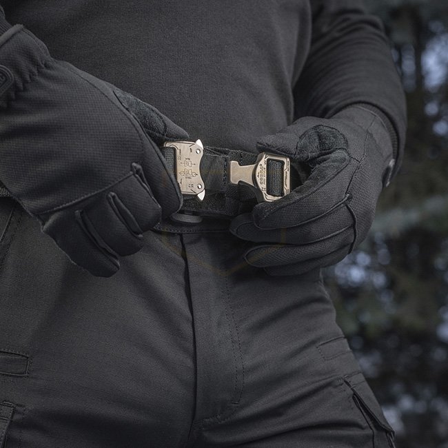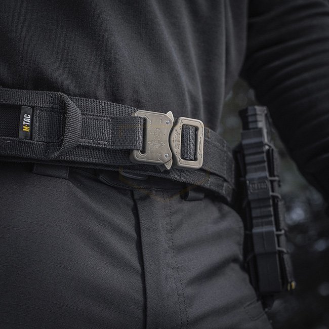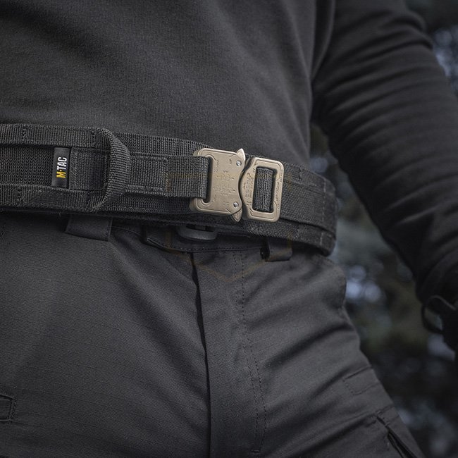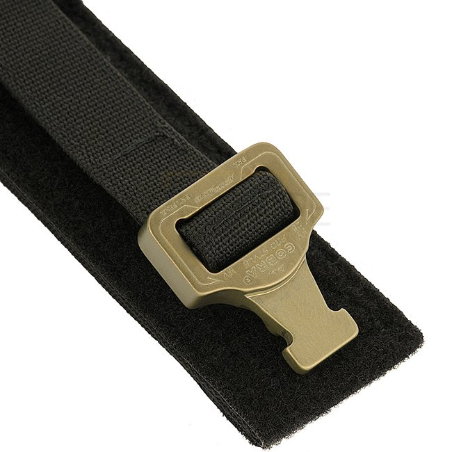 Fabriqué en sangle de nylon solide, résistant aux frottements et aux dommages mécaniques. À l'extérieur, il y a une interface MOLLE qui vous permet d'installer en toute sécurité des équipements supplémentaires. La ceinture est fixée avec une boucle spéciale Cobra 25 mm du fabricant autrichien AustriAlpin, qui peut résister aux charges les plus extrêmes. Il se ferme rapidement et se détache facilement en appuyant simultanément sur les loquets latéraux.