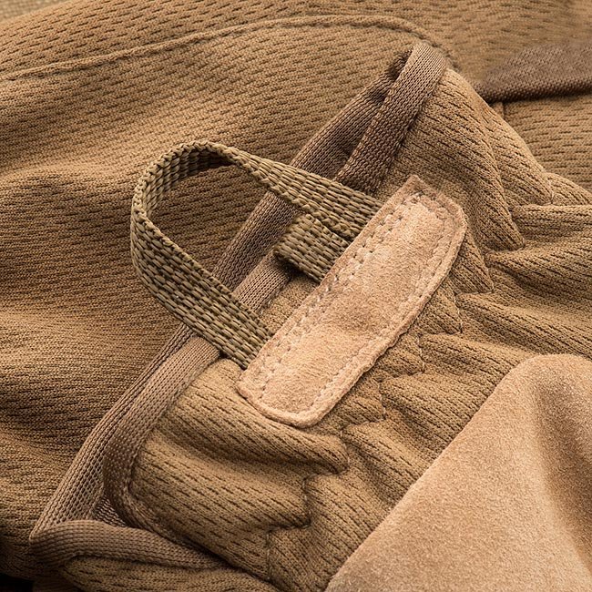 Les gants tactiques Scout ont un panneau extensible continu entre les doigts et les poignets élastiques offrent un ajustement parfait et un enfilage et un retrait flexibles des gants. Le cuir véritable enroulé autour de la paume, du pouce et de l'index offre une protection accrue et une meilleure résistance à l'usure lors de la manipulation d'outils. Les mains restent fraîches, sèches et confortables grâce à la technologie anti-transpiration autour du poignet et des doigts.