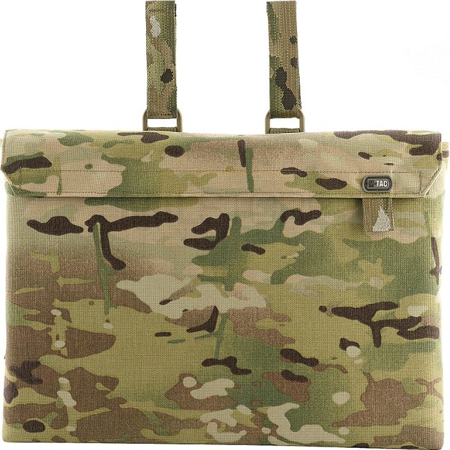 Pochette pour matelas de couchage M-Tac Bundeswehr en couleur Multicam, conçue pour transporter et utiliser le matelas pliant Bundeswehr comme siège. Comprend des sangles velcro pour fixation MOLLE, des ceintures à la taille, un compartiment principal à f