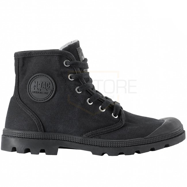 Baskets M-Tac - Noires - 40 sont des baskets en caoutchouc classiques conçues pour le confort et le style. Adaptées à un usage quotidien, aux activités sportives et aux sorties décontractées. Dotées d'un design intemporel avec 6 œillets, un revêtement arr