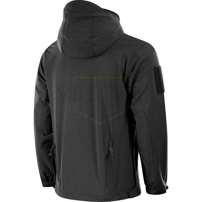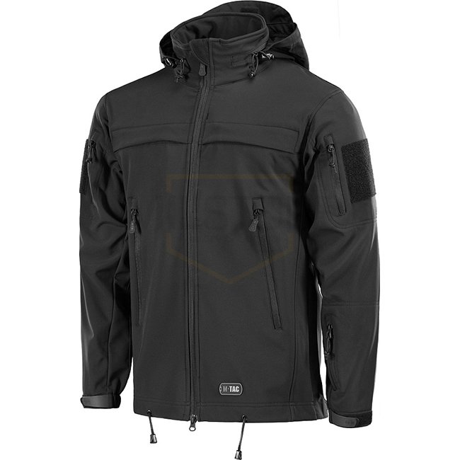 Veste de police Soft Shell M-Tac - Noir - M : Fabriquée en membrane en polyuréthane intercalée pour une protection contre les intempéries, avec une fine couche de polaire. Comprend 2 panneaux d'identification pour la personnalisation et un système d'ouver
