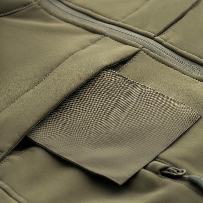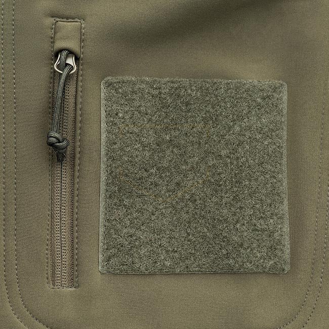 La veste Soft Shell est composée d'une membrane intercalaire en polyuréthane qui protège des intempéries. À l'intérieur, il a une fine couche de polaire. Il dispose de deux panneaux d'identification qui, selon la situation, peuvent être retirés ou rester cachés. Les panneaux vides peuvent être imprimés ou emproided. Un système d'ouverture latérale permet un accès rapide à une arme latéral.