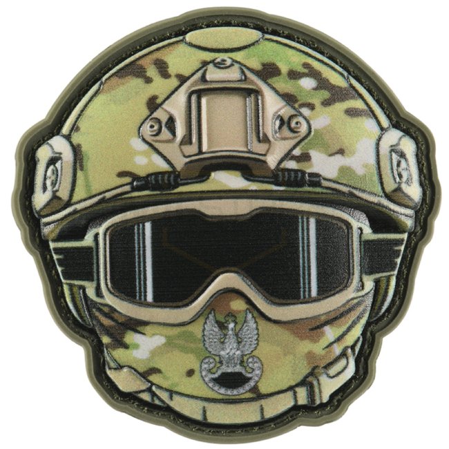 Écusson en caoutchouc du Commandement des troupes spéciales M-Tac en couleur Multicam. Fabriqué en PVC avec surface à crochet. Dimensions : 65 x 65 mm.