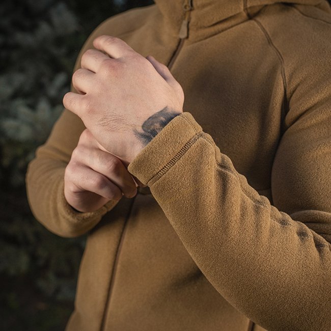 Le sweat à capuche M-Tac Sprint en polaire Polartec en Coyote est un raglan élégant pour légèreté et confort au quotidien.