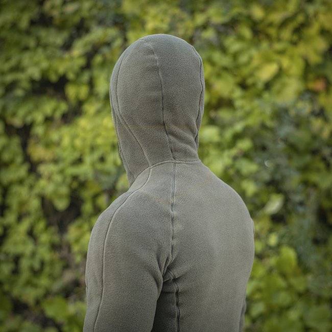 Fabriqué en polaire Polartec 200 de qualité supérieure. Ce matériau est durable et agréable au corps, retient bien la chaleur et ne bouloche pas. Le col haut de la capuche protège efficacement du froid et du vent. Les manches raglan sont spécialement coupées pour le confort et la liberté de mouvement. Cette coupe permet d'obtenir une forme d'épaule inhabituelle, résultant en une silhouette élégante et arrondie. Les coutures plates garantissent le confort et ne frottent pas.
