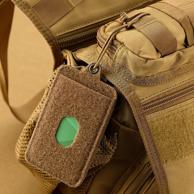 Porte-badge tactique M-Tac - Coyote. Porte-badge tactique avec poche pour carte d'identité. Matériel: Plastique rigide, Velcro. Dimensions : 105 x 65 mm (intérieur), 120 x 65 mm (extérieur).