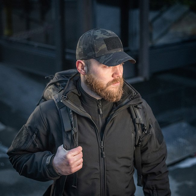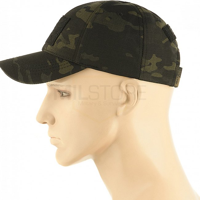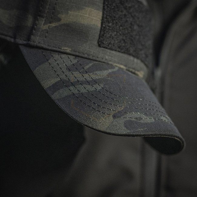 La casquette Tactical Baseball Flex Cap Rip-Stop a six panneaux, cousus à partir d'un tissu indéchirable léger et uni, avec une imprégnation en téflon qui protège de l'eau et de la boue. La visière est dense et garde sa forme. Le fabricant a ajouté un panneau de signature à l'arrière, un panneau Velcro à l'avant, ainsi qu'un panneau Velcro IR sur le dessus. La taille de la casquette peut être ajustée grâce à une bande velcro. Il y a six illets de ventilation sur le dessus de la couronne.