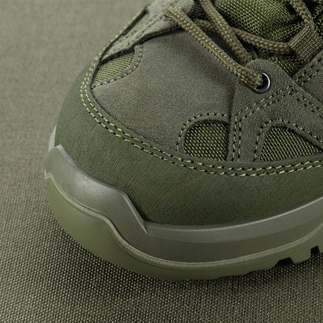 بوتات تكتيكية M-Tac Demi-Season Pro Line en vert Ranger taille 36. Matériaux de haute qualité, semelle Vibram, daim dense & Cordura, résistant à l'humidité, résistant à l'usure, lacets confortables prolongés, doublure en membrane douce, embout et talon e