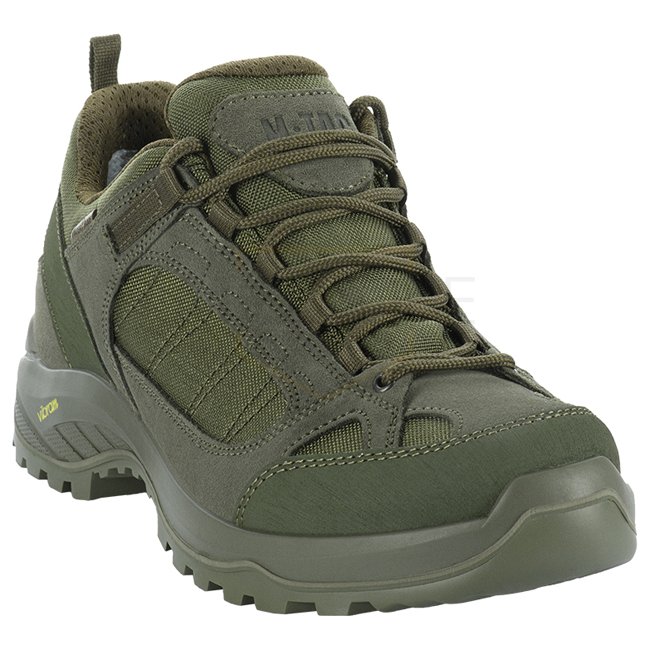 Baskets M-Tac Tactical Demi-Season Pro Line - Vert Ranger - 45 : Baskets de haute qualité et durables en daim dense et Cordura avec semelle Vibram, résistant à l'humidité, respirant et résistant à l'usure. Lacets prolongés, doublure en membrane douce, cap