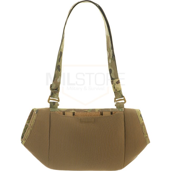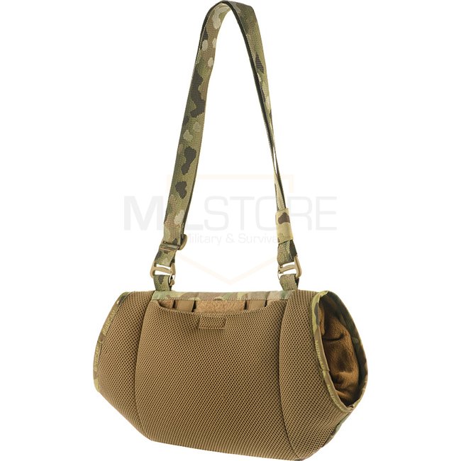 Avec la bandoulière, le manchon peut être porté dans n'importe quelle position ainsi qu'avec une combinaison de vêtements différents. Spécialement destiné aux militaires, ce modèle est équipé d'une bande velcro et conçu pour être fixé sur un panneau velcro sous la face avant d'un porte-plaque. S'il n'y a pas de panneau Velcro sur le gilet, le manchon peut être attaché à un système MOLLE à l'aide de connecteurs en forme de T.