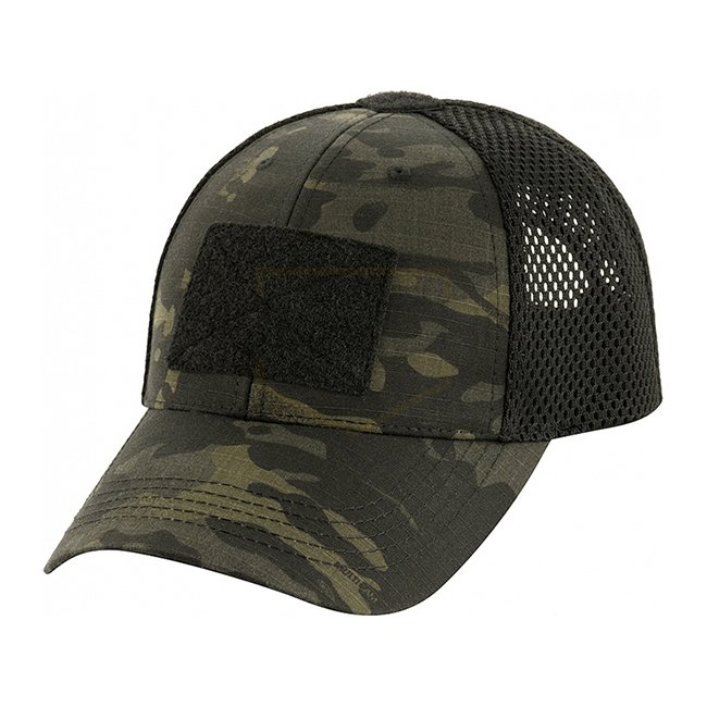 La casquette Tactical Mesh Cap a six panneaux, cousus à partir d'un tissu indéchirable léger et uni, avec une imprégnation en téflon qui protège de l'eau et de la boue. Le dos est fait d'un matériau en maille permettant la circulation de l'air. La visière est dense et garde sa forme. Le fabricant a ajouté un panneau de signature à l'arrière, un panneau Velcro à l'avant, ainsi qu'un panneau Velcro IR sur le dessus. La taille de la casquette peut être ajustée grâce à une bande velcro. Il y a six illets de ventilation sur le dessus de la couronne.