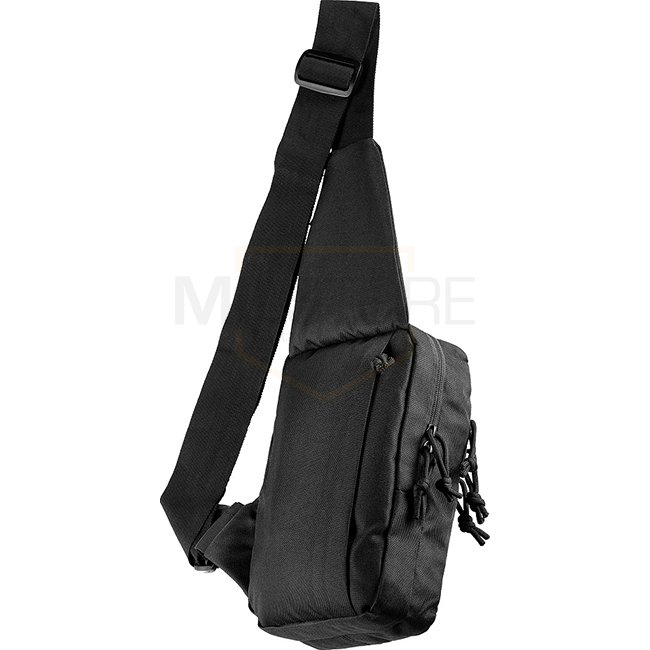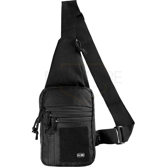 Sac Tactique M-Tac à Bandoulière, Sacoche de Poitrine & Velcro - Noir - Sac de port dissimulé avec holster ajustable et plusieurs compartiments.